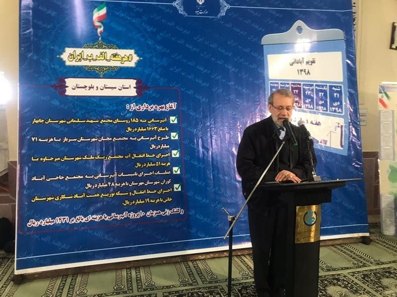 به‌ گزارش روایط عمومی شرکت مهندسی آب و فاضلاب کشور، علی لاریجانی امروز سه‌شنبه که به همراه رضا اردکانیان وزیر نیرو به استان سیستان و بلوچستان سفر کرده است، در آیین آغاز عملیات اجرایی پروژه آبرسانی به ۱۲۶ روستای چابهار افزود: تا قبل از سال 93 حدود یک میلیون نفر از ساکنان روستاهای کشور از آب شرب لوله‌کشی پایدار استفاده می‌کردند که طی چند سال اخیر با اجازه رهبر معظم انقلاب برای توسعه این امر بودجه‌ای از صندوق توسعه ملی اختصاص دادیم، تعداد 7 میلیون نفر از جمعیت روستایی به آب شرب پایدار دسترسی پیدا کردند و این آمار به تعداد قبل افزوده شد.