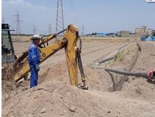 عملیات لوله گذاری خط انتقال آب در روستای کاظم آباد و آدران رباط کریم