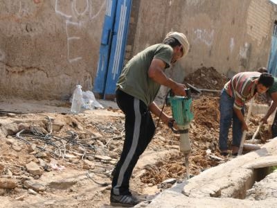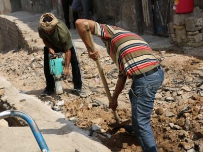 با توجه به عرض کم خیابان و عدم امکان ورود ماشین آلات ، عملیات حفاری به صورت دستی انجام شد.