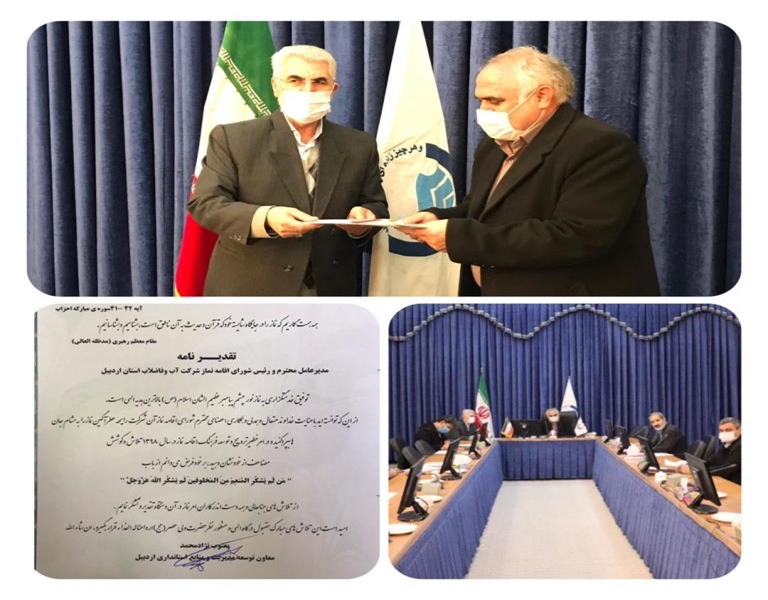 در متن ابلاغی که به امضا یعثوب نژاد محمد معاون توسعه مدیریت ومنابع انسانی استانداری اردبیل رسیده آمده است: «ازاینکه توانسته اید باعنایت خداوند متعال وهمدلی وهمکاری اعضای محترم شورای اقامه نماز آن شرکت درامرخطیرترویج وتوسعه فرهنگ اقامه نمازدرسال ۱۳۹۸ تلاش وکوشش مضاعف از خودنشان دهید برخود فرض می دانم ازتلاش های جنابعالی وهمه دست اندرکاران امر نماز درآن دستگاه تقدیر وتشکر نمایم