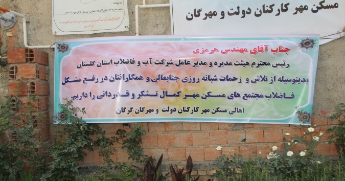 بدینوسیله از تلاش و زحمات شبانه روزی جنابعالی و همکارانتان در راستای رفع مشکل فاضلاب مجتمع های مسکن مهر کارکنان دولت و مهرگان شهرستان گرگان کمال تشکر و قدردانی را داریم .