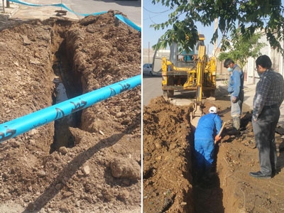 رفع اتفاق لوله 75 پلی اتیلن شبکه توزیع آبرسانی به شهرک شهرداری شهر قاین