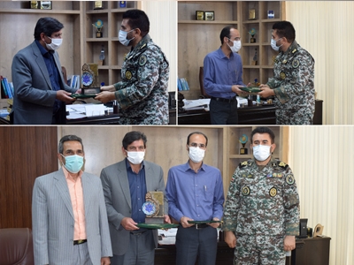 در این دیدار تندیس و لوح تقدیر ارسالی از سرتیپ ستاد علیرضا صباحی فرد فرمانده نیروی پدافند هوایی ارتش جمهوری اسلامی ایران در راستای تعامل و همکاری در پروژه آبرسانی به منطقه پدافند هوایی شرق به مهندس امامی مدیریت عامل شرکت و مهندس فریور مدیر دفتر مطالعات و خدمات فنی شرکت آبفای استان تقدیم شد.