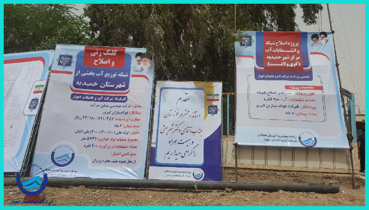 • طرح اصلاح شبکه توزیع  آب بخشی از منطقه درویشیه (کوت عبداله) و شهرستان حمیدیه