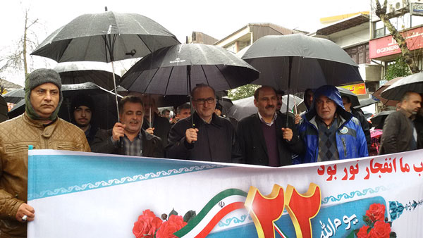 به گزارش دفتر روابط عمومی آبفای گیلان مدیرعامل و کارکنان آبفای گیلان همگام با سایر اقشار مختلف جامعه در 22 بهمن چهلمین سالروز پیروزی انقلاب اسلامی مردم ایران در راهپیمایی ویژه ی این روز حضور یافتند.