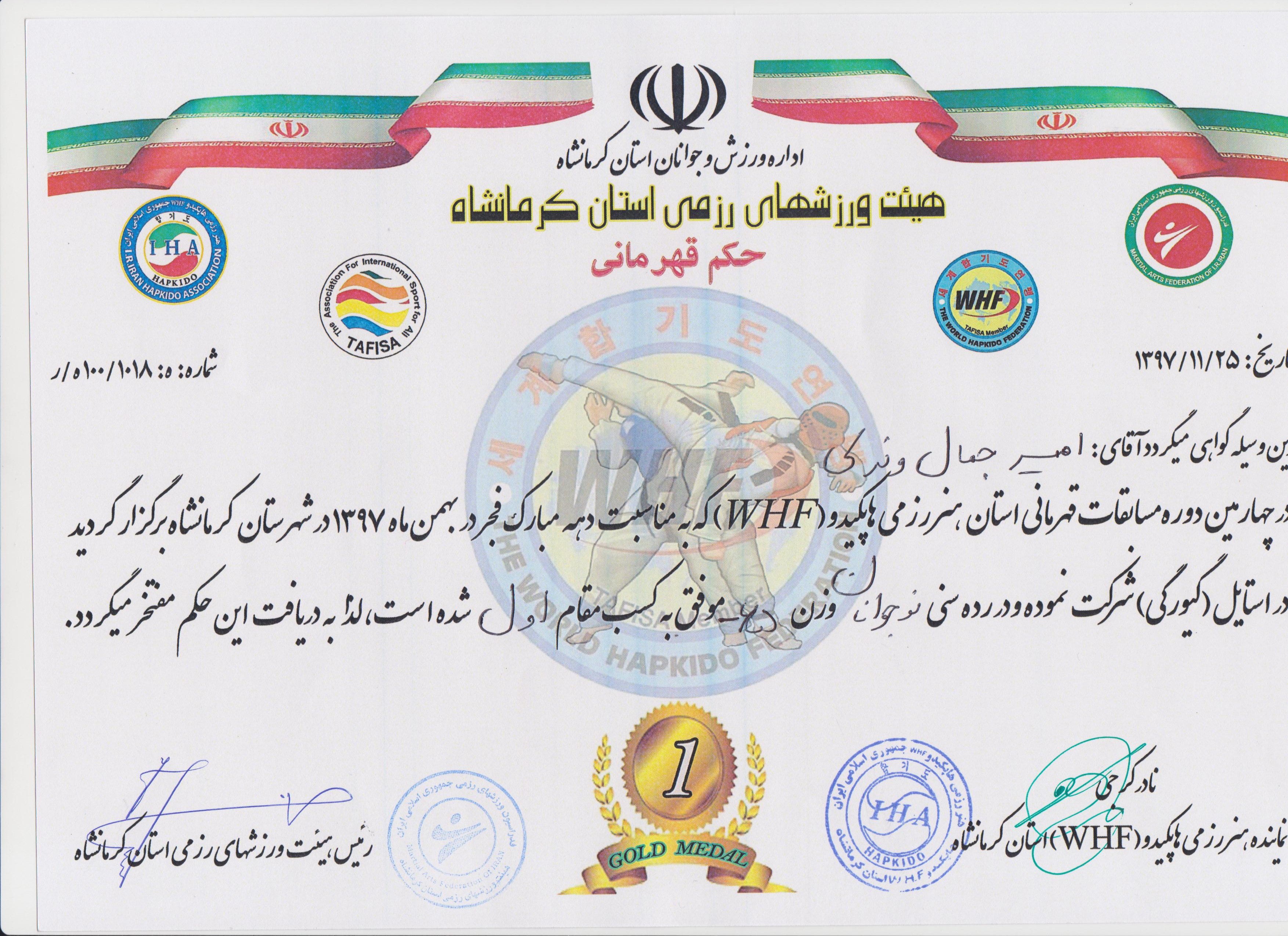 • کسب مدال طلای مسابقات هنر رزمی هاپکیدو توسط امیرمحمد جمالوندی