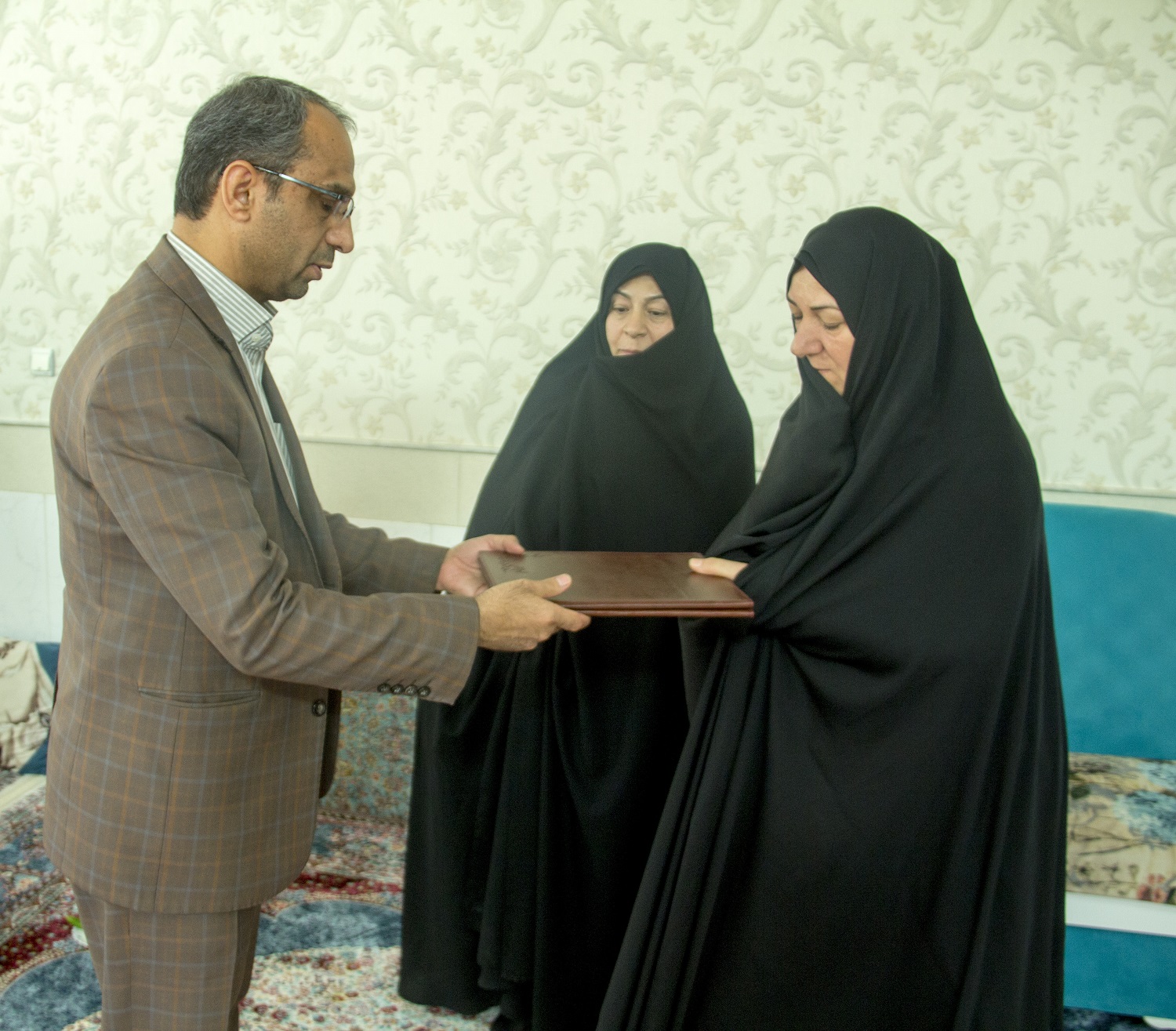 دکتر احمدی جبلی در پایان این دیدار با اهداءکارت هدیه و لوح تقدیر از خانواده معظم شهید غلامحسین شاه قلندری  تقدیر نمود.