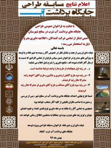 نتایج مسابقه طراحی احداث جایگاه های آب شرب گناباد اعلام شد.