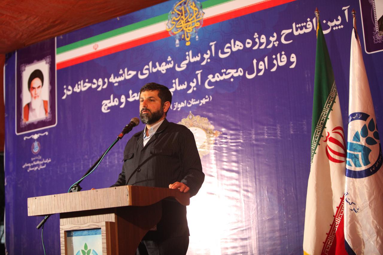 استاندار خوزستان در مراسم افتتاح این پروژه با بیان اینکه امکانات سلامت و آموزش جزو زیرساخت های اصلی توسعه جوامع است یادآور شد: دسترسی به آب شرب سالم جزو اصلی ترین زیرساخت های توسعه در هر منطقه ای است و تلاش میکنیم در خوزستان مسیر بهبود کیفیت آب شرب را طی کنیم.