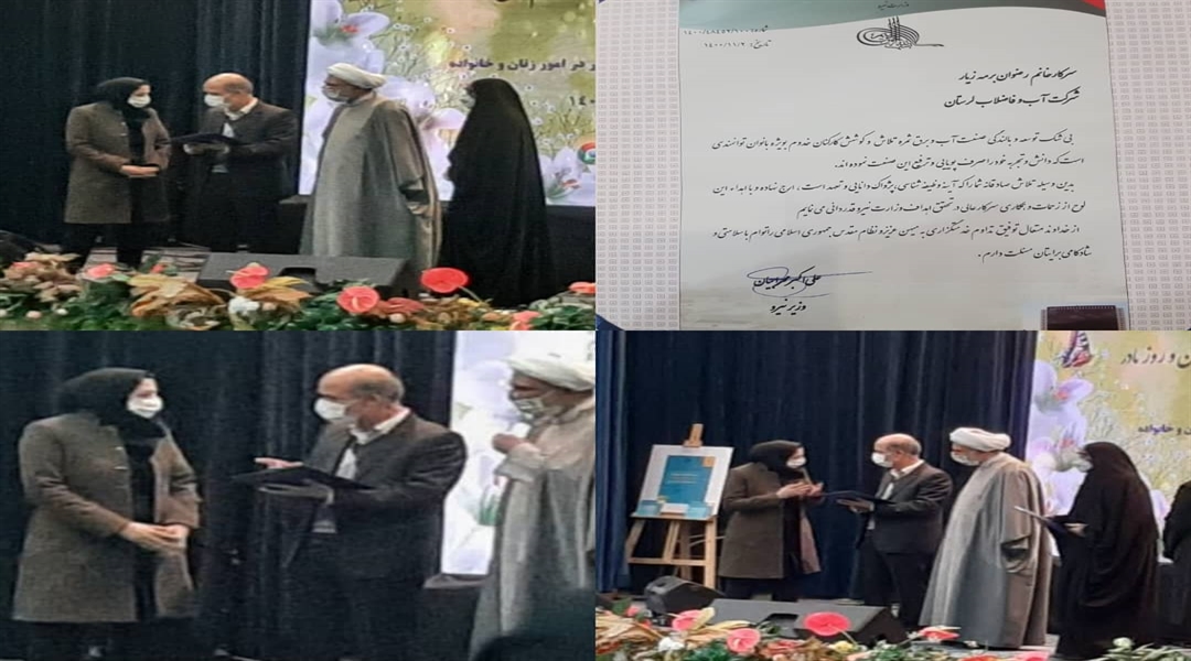 در همین مراسم که صبح روز سه شنبه۴ بهمن ماه ۱۴۰۰برگزارشد از پژوهشگر و مخترع نمونه بین المللی برگزیده صنعت آب و برق سرکار خانم مهندس رضوان برمه زیار با حضور وزیر محترم نیرو جناب دکتر مهرابیان و روسا و مسئولین وزارتی و مراکز تحقیقاتی تجلیل بعمل آمد.