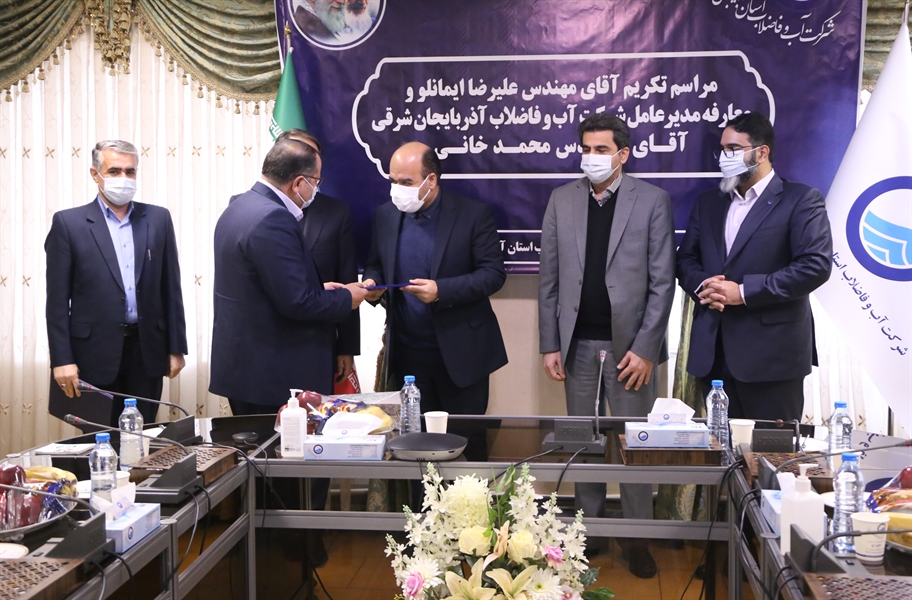 در پايان مراسم ضمن تقدير از خدمات ارزنده مهندس علیرضا ایمانلو مديرعامل پيشين شركت آب و فاضلاب استان و قرائت لوح تقديري اهدايي از سوي مديرعامل شركت مهندسي آبفا كشور ، با ابلاغ حكم انتصاب، مهندس محمد خانی به عنوان مديرعامل شركت آب و فاضلاب آذربایجان شرقی معرفي شد.
