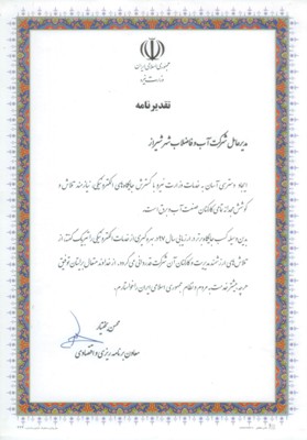 در متن این تقدیر نامه آمده است: ایجاد دسترسی آسان به خدمات وزارت نیرو با