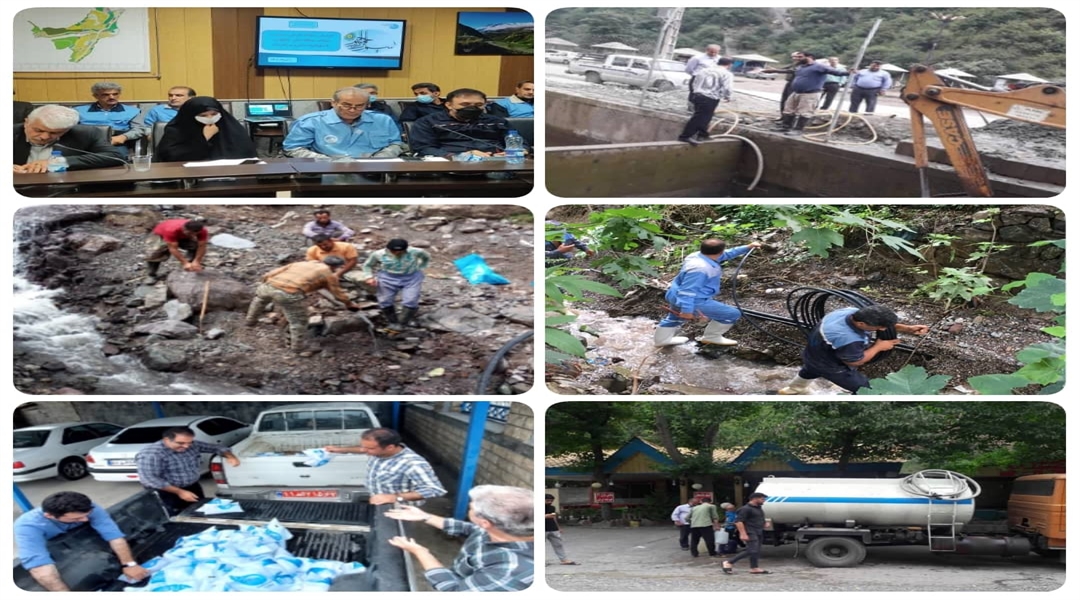 او با اشاره به تشکیل ستاد مدیریت بحران از همان ساعات اولیه بروز سیل، تصریح کرد: ضمن تشکیل تیمهای ارزیاب اولیه و بررسی ابعاد خسارت در 30 روستای درگیر سیل اقداماتی همانند شستوشوی حوضچهها و آبگیر تصفیهخانه آب کلاردشت و راه اندازی مجدد آن، اعزام تانکر سیار آبرسانی به شهرستان کلاردشت و روستاهای آسیب دیده منطقه مرزن آباد چالوس ، بلده نور و پلور آمل از یک سو و از سوی به استانهای تهران،اصفهان و یزد، تشکیل 3 تیم ارزیابی خسارات وارده به روستاهای درگیر سیل و بازدید و برآورد خسارت انجام شد.