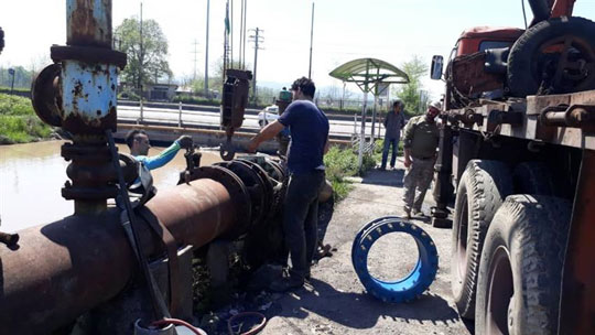 اداره آبرسانی رشت با تعویض دیسماند 500 میلی متری و آزاد سازی زبانه شیر وزنه ای