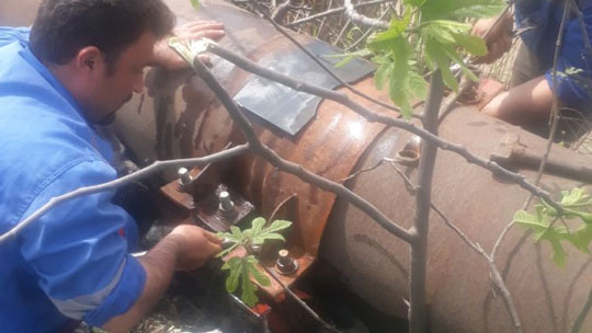 بکارگیری کمربند فولادی توسط تیم تعمیرات اداره آبرسانی امور رشت از هدر رفت آب به