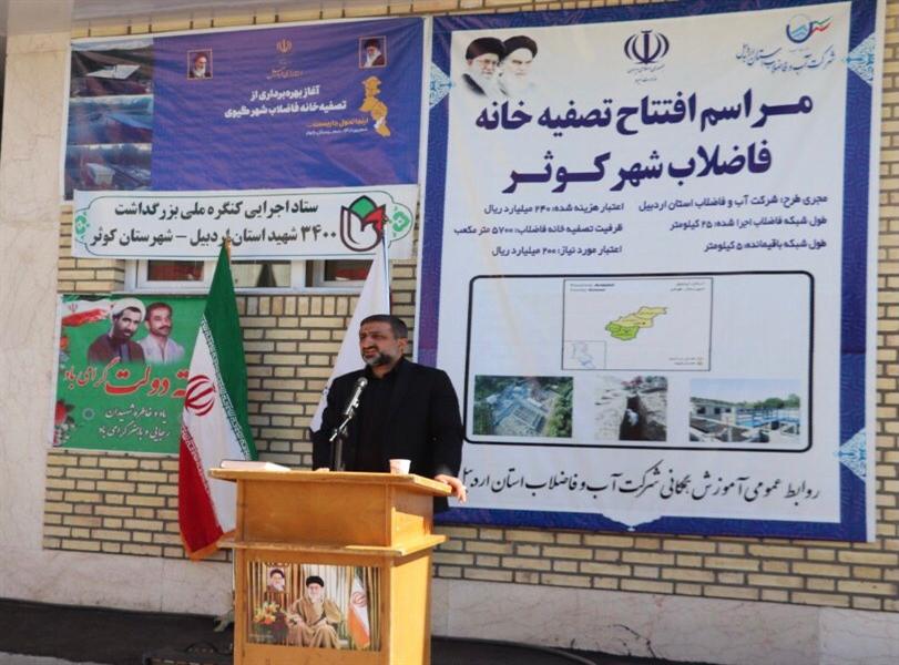 علیرضا نعمت سلطانی، رئیس هیات مدیره و مدیرعامل شرکت آب وفاضلاب استان اردبیل نیز با بیان این که با بهرهبرداری از این طرح، از این پس فاضلابی که به معضل برای شهرکوثرتبدیل شده بود و آن را آلوده میکرد به آبی تبدیل میشود که در صنعت، کشاورزی و محیط زیست مورد استفاده قرار میگیرد، به برخی از اقدامات صورت گرفته دیگر اشاره کرد و افزود: برای تکمیل تصفیهخانه فاضلاب شهرکوثر 25 کیلومتر شبکه فاضلاب اجرا شده و پنج کیلومتر باقیمانده با اعتبار۲۰۰میلیارد ریال اجرا میشود.