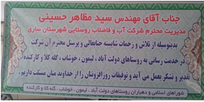 اهالی و شوراهای اسلامی 6 روستای دولت آباد ، لیمون ، دولت آباد ،خوشاب ، کارکنده ، ترفون پشت و سایر روستاهای واقع در بخش مرکزی شهرستان ساری از مدیریت و پرسنل این امور در راستای خدمات رسانی مناسب در ایام تعطیلات نورورز قدردانی کردند.