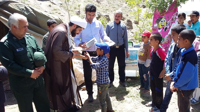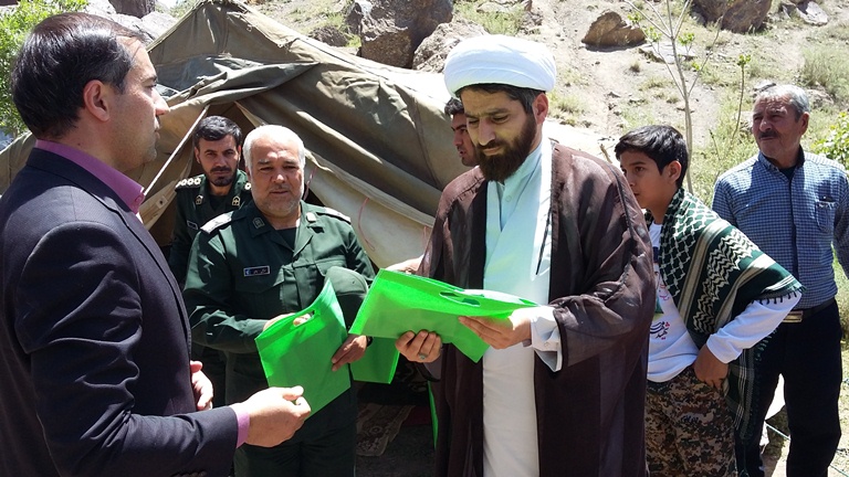 بازدید امام جمعه شهرستان باخرز از غرفه فرهنگی آموزشی امور آبفار در روستای منج