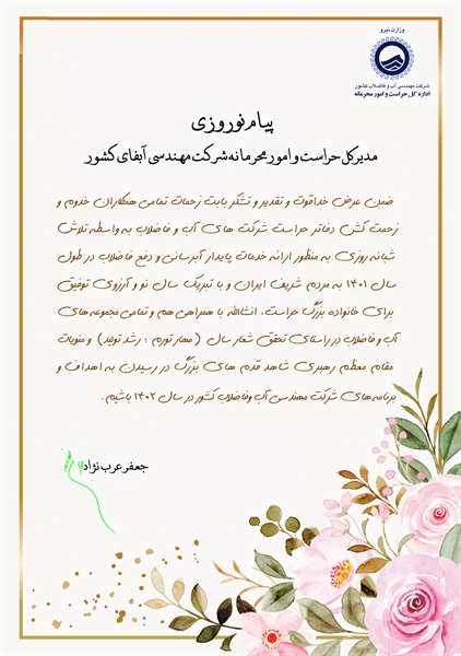 متن پیام نوروزی مدیرکل حراست و امور محرمانه شرکت مهندسی آبفای کشور به این شرح است: