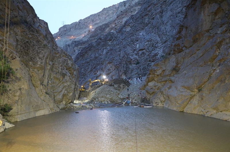 با تلاش شبانه‌روزی و بسیج امکانات، هم‌اکنون مسیری از میان توده‌های عظیم سنگ به همراه گل و لای در بستر رودخانه ایجاد و آب در مسیر رودخانه جاری شده است.