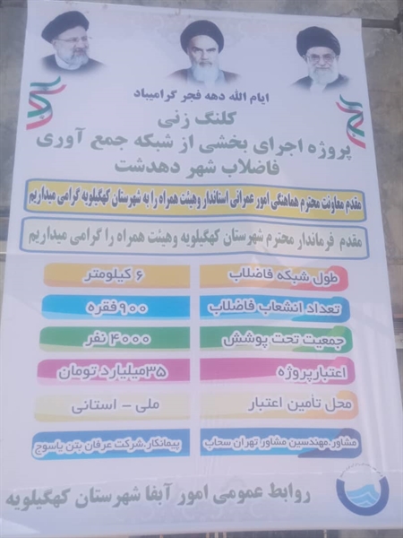 مدیر امور آب و فاضلاب دهدشت گفت: پروژه های فاضلاب از آنجهت که در سلامت شهروندان و حراست از منابع محدود آب اثرگذار است و میتواند برای صنایع و فضای سبز هم کاربردهای مهمی ایفا کند مد نظر دولت است. این پروژه مهم شهر دهدشت نیز حمایت خوب دولت را دارد و انشالله با تزریق منابع کافی، در زمان مقرر به سرانجام میرسد.