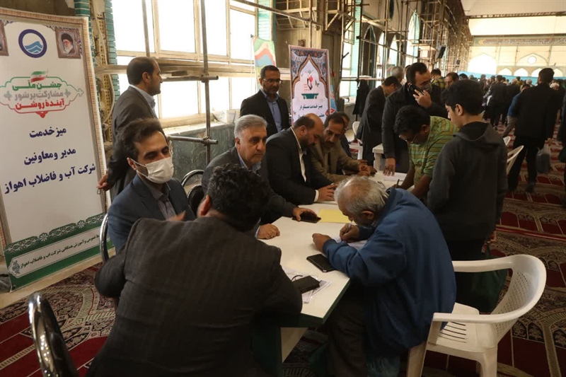 در حاشیه نماز جمعه میز خدمت مدیران و معاونین شرکت آب و فاضلاب با استقبال نمازگزاران اهواز برگزار شد .