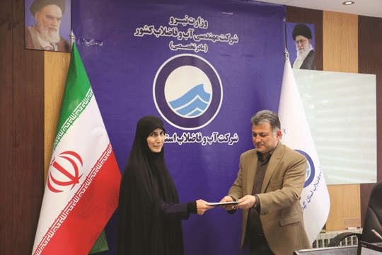 احمد حیدری معاون مالی، حقوقی و مجلس و دبیر هیأت مرکزی گزینش وزارت نیرو با اهداء لوح از فریبا عزیزی نماينده هسته و مدير دفتر گزينش شركت آب و فاضلاب استان گيلان قدردانی کرد.