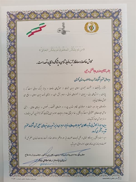در بخشی از این تقدیرنامه آمده است :