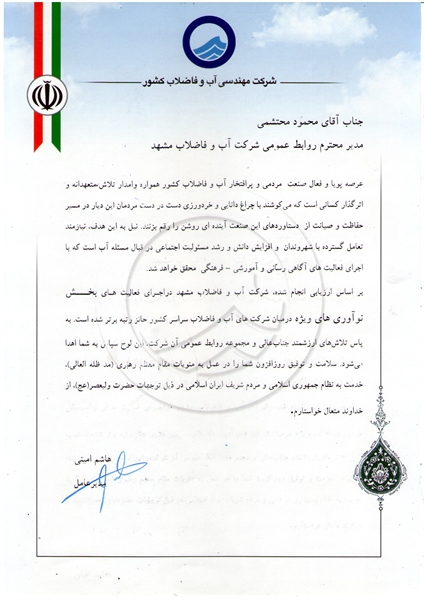 • کسب عنوان روابط عمومی برتر توسط آبفای مشهد در بین شرکت های آب و فاضلاب کشور