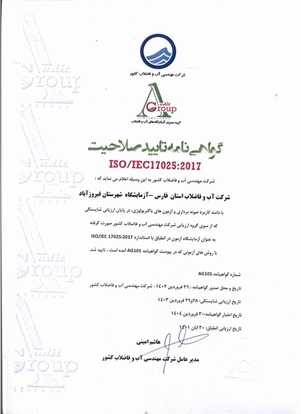 • اخذ گواهینامه 17025 ISO/IEC توسط آزمایشگاه امورآبفا شهرستان فیروزآباد