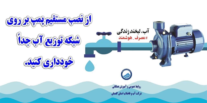 معاون خدمات مشترکین و درآمد شرکت آب و فاضلاب استان گلستان به مشکلات ناشی از نصب مستقیم پمپ بر روی شبکه آب اشاره و تاکید کرد : این اقدام باعث نشان دادن مصرف غیر واقعی بر روی کنتور آب و تحمیل آب بهای بسیار بیشتر از مقدار واقعی مصرف به مشترکین (در مواقع افت فشار آب به دلیل مکش پمپ آب به همراه مقادیر زیادی هوا و کف از کنتور عبور می کند) و همچنین ایجاد فشار منفی ناشی از کارکرد تعداد زیادی پمپ های خانگی بر روی شبکه آب موجب مکیده شدن آب سطحی آلوده و فاضلاب خانگی در نقاطی می شوند که شبکه آب دارای شکستگی و یا دارای نشتی است.