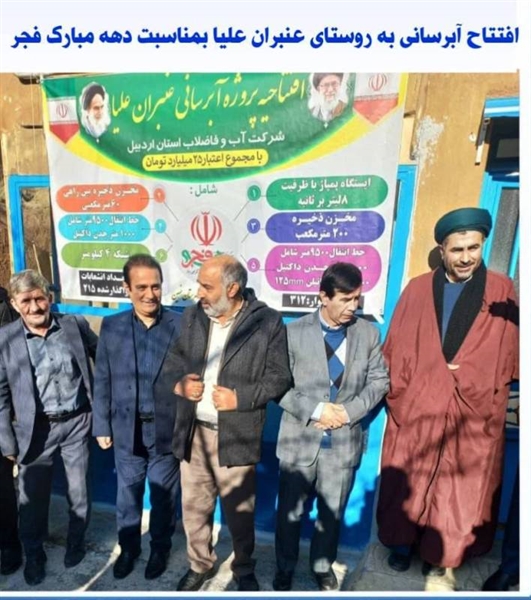 بمناسبت دهه مبارک فجر آبرسانی به روستای عنبران علیا از توابع شهرستان نمین با حضورجمعی از مسئولین شهرستان نمین به بهره برداری رسید