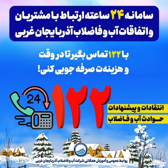 • ضرورت بهره‌گیری مشترکان از خدمات غیرحضوری سامانه 122 شرکت آب و فاضلاب آذربایجان‌غربی