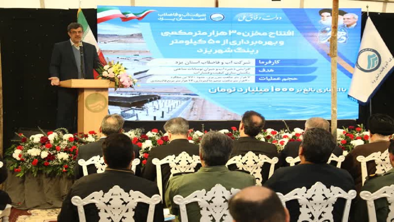 جلال علمدار مدیرعامل شرکت آب و فاضلاب شرکت یزد در آیین افتتاح مخزن ۳۰ هزار مترمکعبی فدک و ۵۰ کیلومتر از طرح بزرگ رینگ آبرسانی شهر یزد که همزمان با دهه مبارک فجر و با حضور «محمدرضا بابایی» استاندار، «محمدصالح جوکار» نماینده مردم یزد در مجلس شورای اسلامی و جمعی از مسئولان استانی برگزار شد، گفت: مخزن ۳۰ هزار متر مکعبی فدک و دو خط انتقالی مرتبط جزئی از پروژه بزرگ رینگ آبرسانی شهر یزد است که نقش مهمی در افزایش تابآوری، بهبود افت فشار آب و همچنین کیفیت آب شرب شهر یزد دارند.
