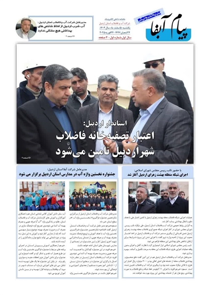 • ماهنامه شماره یک پیام آبفا در آب و فاضلاب استان اردبیل منتشر شد