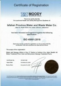 شرکت آب و فاضلاب استان اصفهان پس از گذراندن ممیزی خارجی موفق به کسب گواهینامه سیستم مدیریت محیط زیست ISO14001 :2015 و تمدید گواهینامههای سیستم مدیریت انرژیISO 50001: 2018 و سیستم مدیریت ایمنی و بهداشت شغلی ISO 45001: 2018 شد.