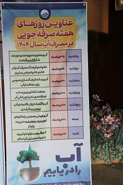 قائم مقام  شرکت آب و فاضلاب استان سمنان،  آگاهی‌بخشی عمومی، همراهی رسانه‌ها و ترویج مسئولیت‌پذیری در مصرف آب  را مورد تاکید قرار داد و  در ادامه عنوان روزهای "هفته صرفه‌جویی در مصرف آب"را به این شرح اعلام کرد: