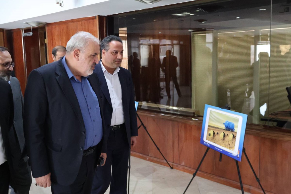 بازدید وزیر نیرو همراه با مدیرعامل شرکت مهندسی آب و فاضلاب کشور از آثار منتخب جشنواره ملی کاریکاتور با موضوع آب و مدیریت مصرف